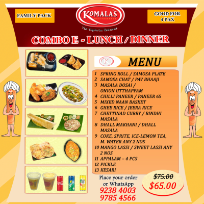21 Jul 2021 Combo E Indulge in our delicious food specially curated for your Family by our Chef. We ... READ MORE